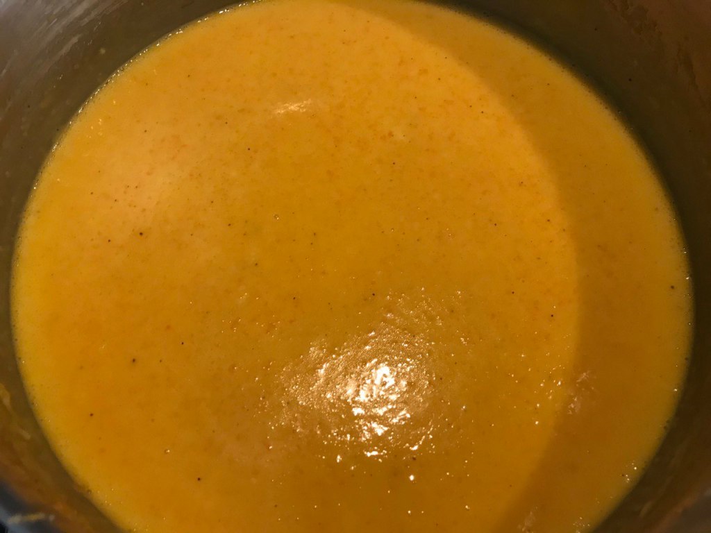 Sonra hazırladığımız havuç püresi yavaş yavaş terbiyeye eklenir. Topaklanmaması için karıştırmak önemli.
