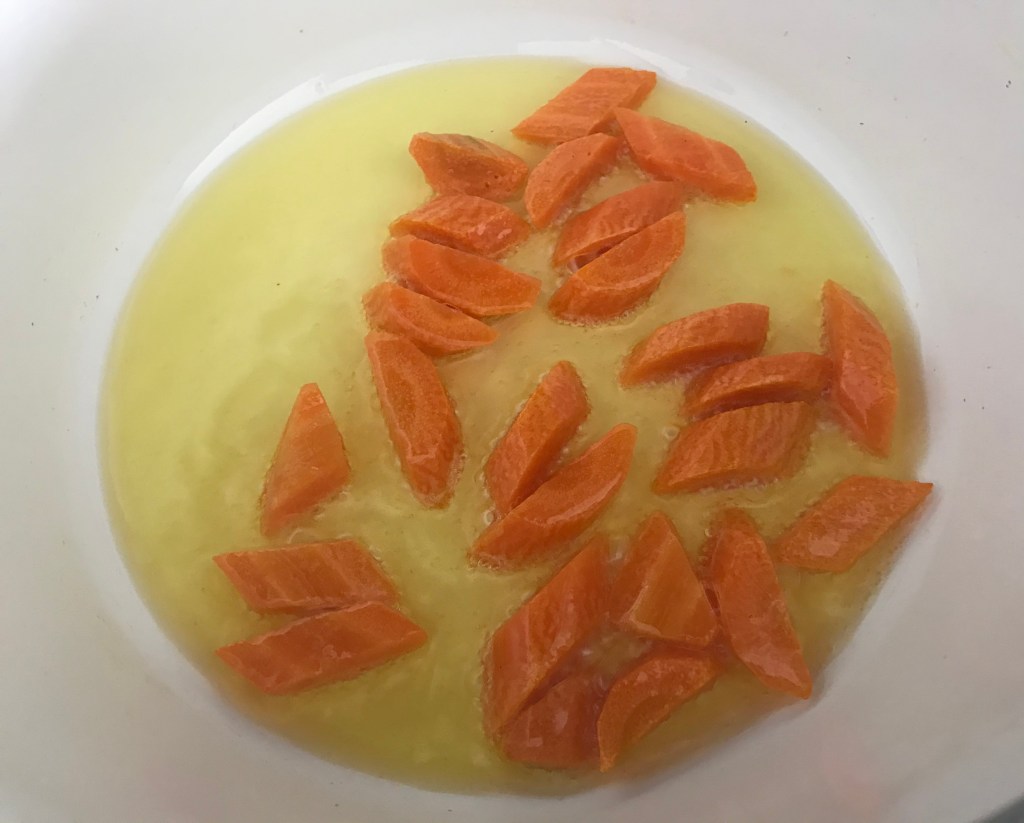Zeytinyağı tencereye koyulup havuç sotelenir.