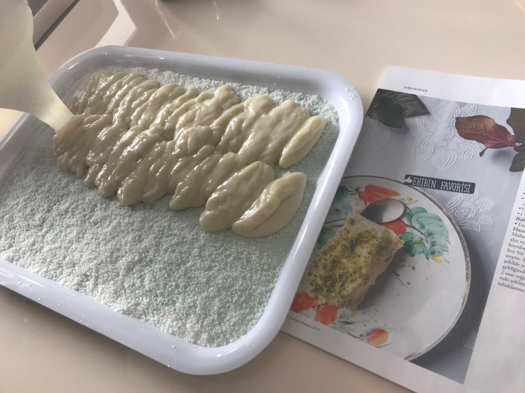 Un, süt, şeker ve yağ tencereden koyulaşana kadar karıştırılarak pişirilir. İsteğe göre hindistan cevizi tozu serilmiş tepsiye eşit şekilde yayılır. Oda sıcaklığına geldiğinde buzdolabına konulup 2 saat dinlendirilir.