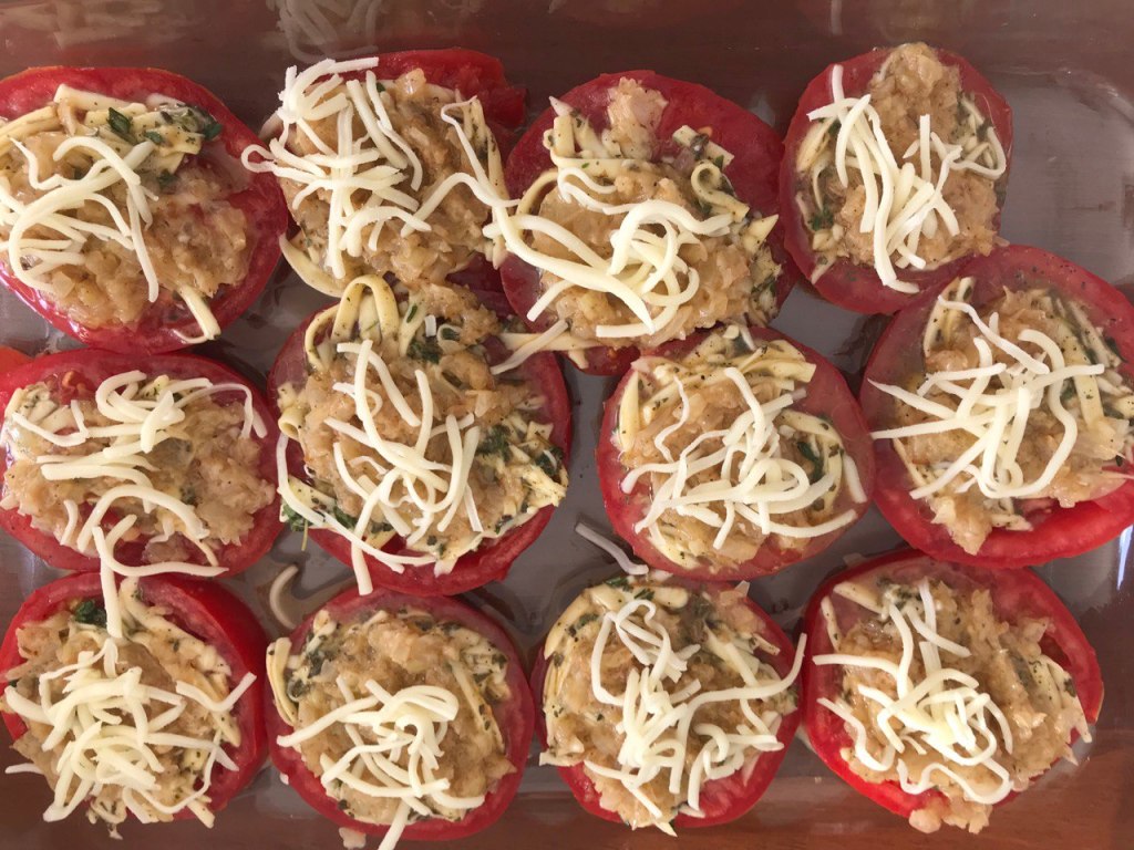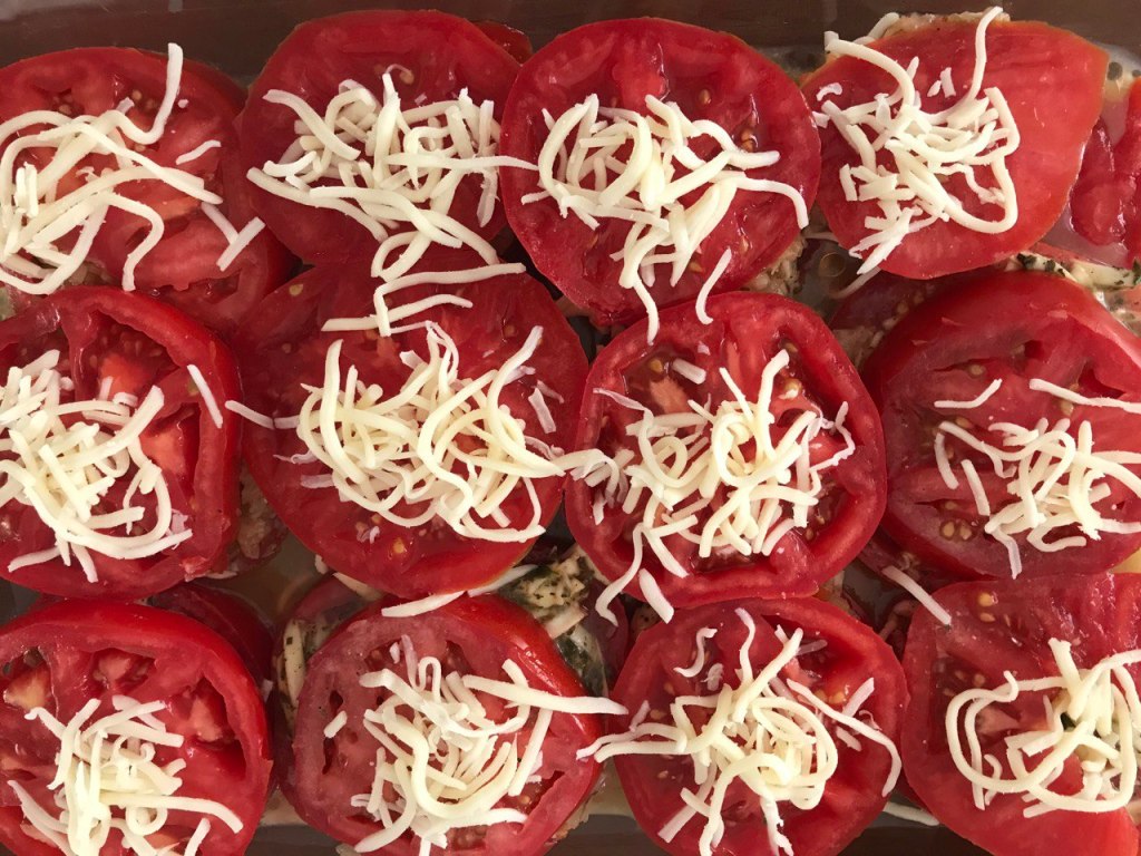 Domatesler tepsiden alınıp kağıt havluyla nemleri çektirilir. Yağlanmış bir turta kabına tek sıra halinde yerleştirilir. Üzerine yaklaşık 1/4 bardak peynir karışımı yayılır. Tüm malzemeler bitene kadar tekrarlanır ve üstte domates dilimleri olacak şekilde bitirilir.