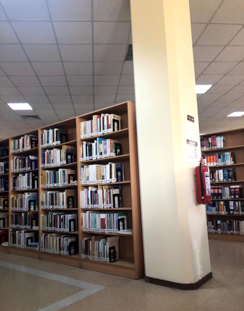 Merkez kütüphane için konuşacağım. Kaynaklar bence çok fazla ama eski. Dergiler güncel olarak geliyor. Çok fazla çeşit var dergi olarak. Sınav haftalarında yer bulmak zor. Sabah erkenden gitmeniz gerekiyor. (İnternette yazdığına göre merkez kütüphanenin 726 kişilik oturma kapasitesi varmış) Kütüphanemiz her zaman 7 gün 24 saat açık. Kampüste yeni açılan, yurtlara yakın bir çalışma salonu daha var.