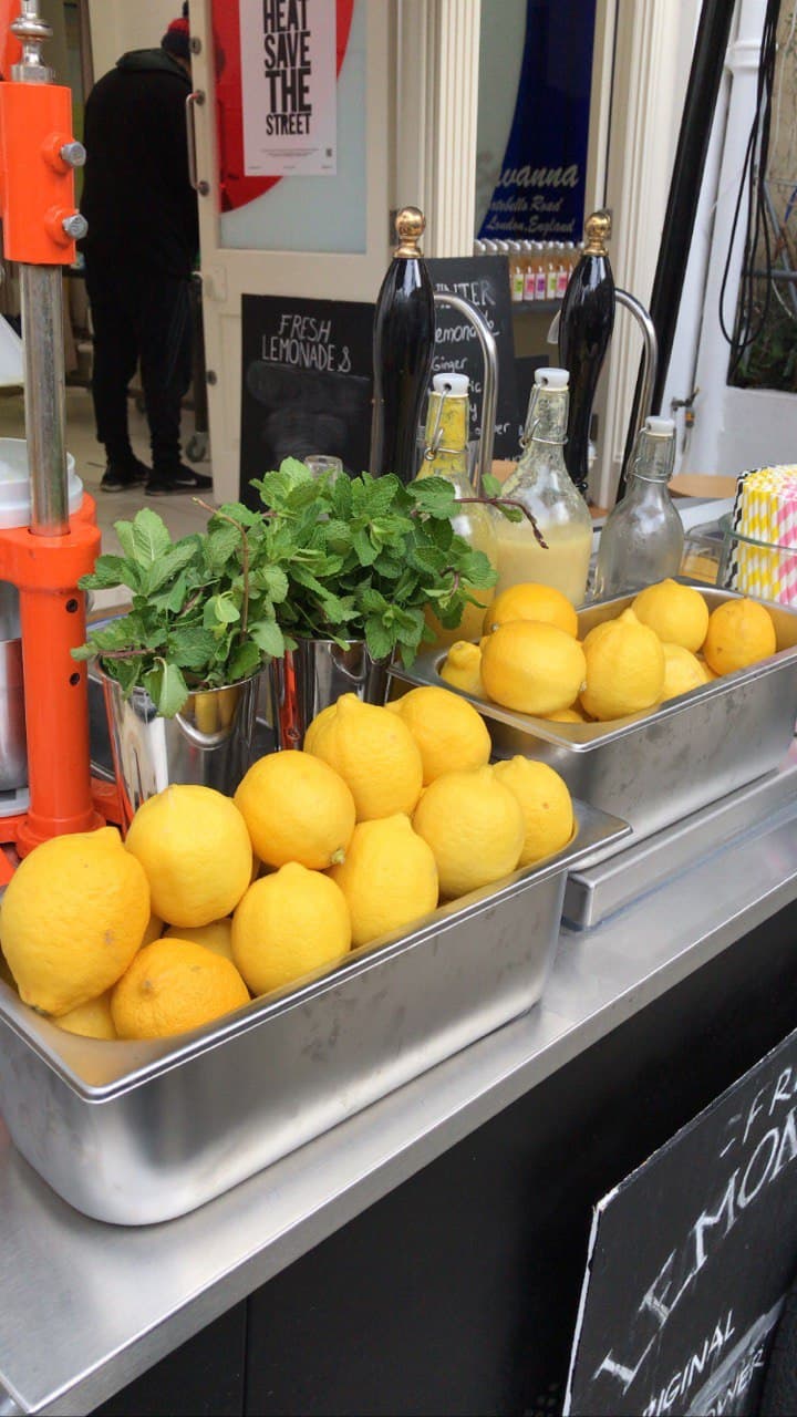 Onun yerine çaprazındaki sevimli bir amcadan geleneksel elderberry’li limonata aldık. İçine çilek de koymasını bekliyorduk ancak onu sadece yazın yaptığını tahtaya yazmayı unutmuş. Yine de güzeldi ama İngiltere standartları için £5 bir limonata için biraz fazla.